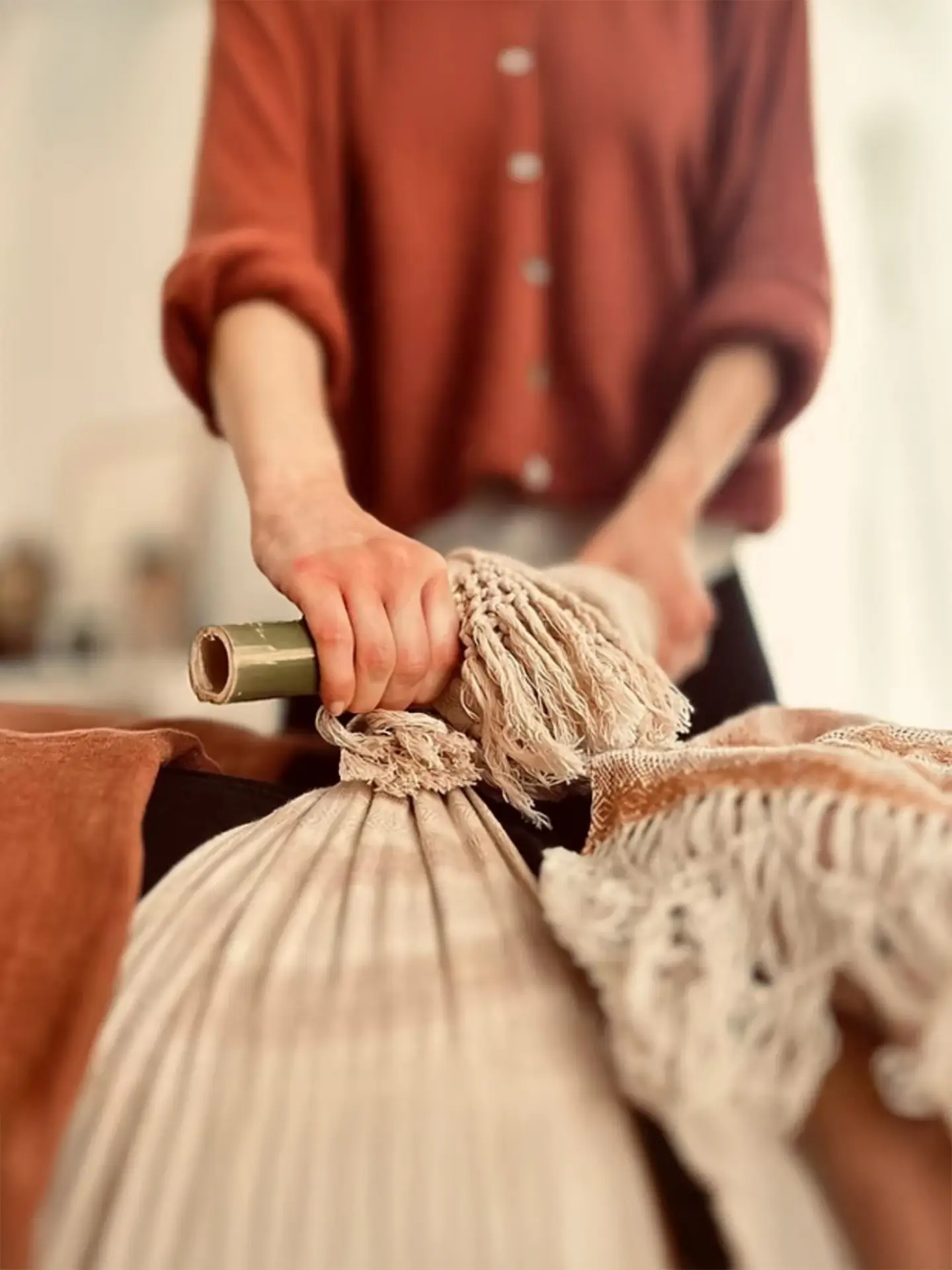 Un soin d’ancrage et de passage pour refermer un cycle et célébrer une transformation. Accompagné de gestes rituels, de chaleur et d’écoute.